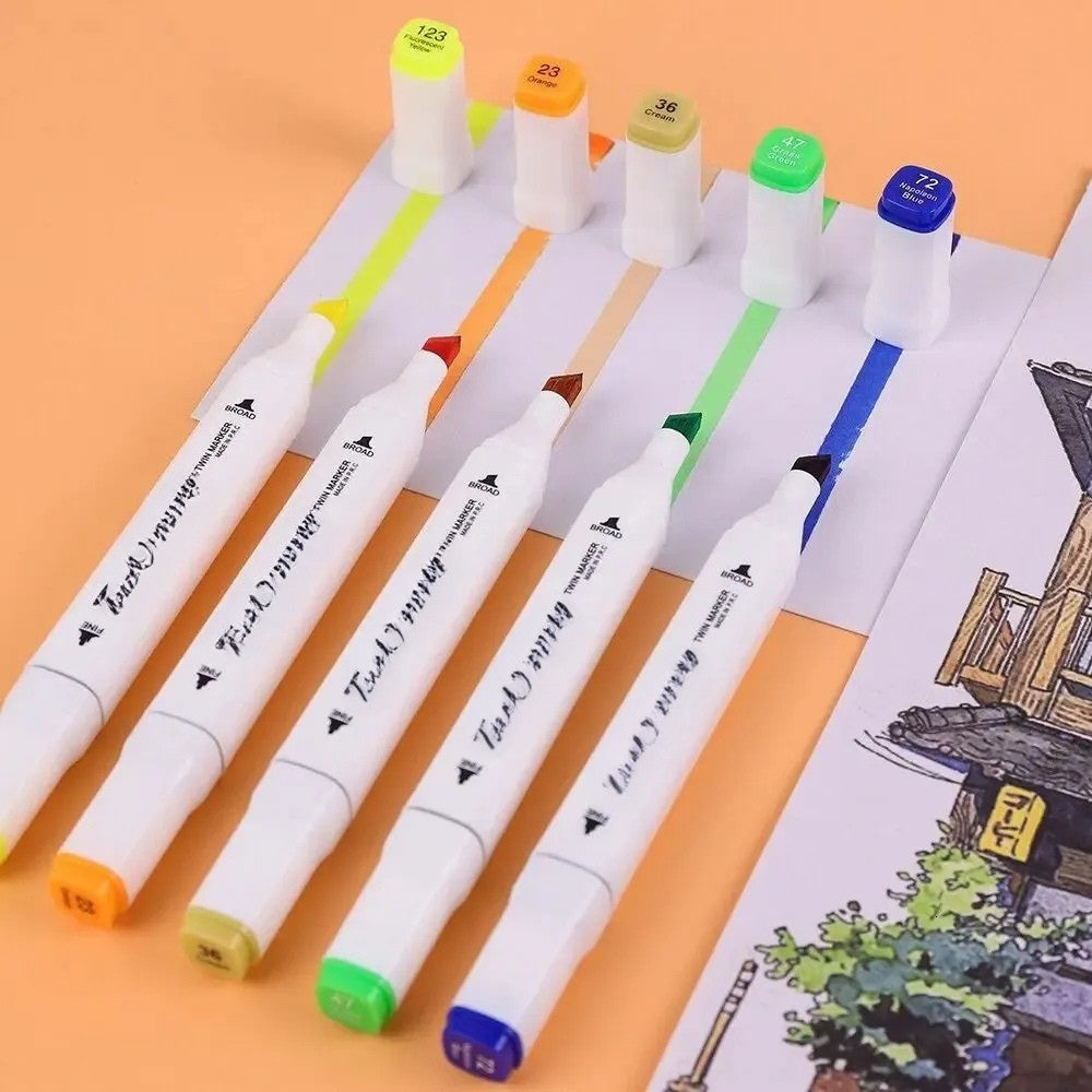 Elevate your artistic creations with Alcohol Markers Lights Art Markers, a set of 18 double-ended sketch markers designed for versatility and precision. Each marker features dual tips—fine for detailed work and chisel for broad strokes—making them perfect for a wide range of artistic tasks. The alcohol-based ink provides vibrant, smooth, and streak-free coverage, ensuring that your artwork looks professional and polished.