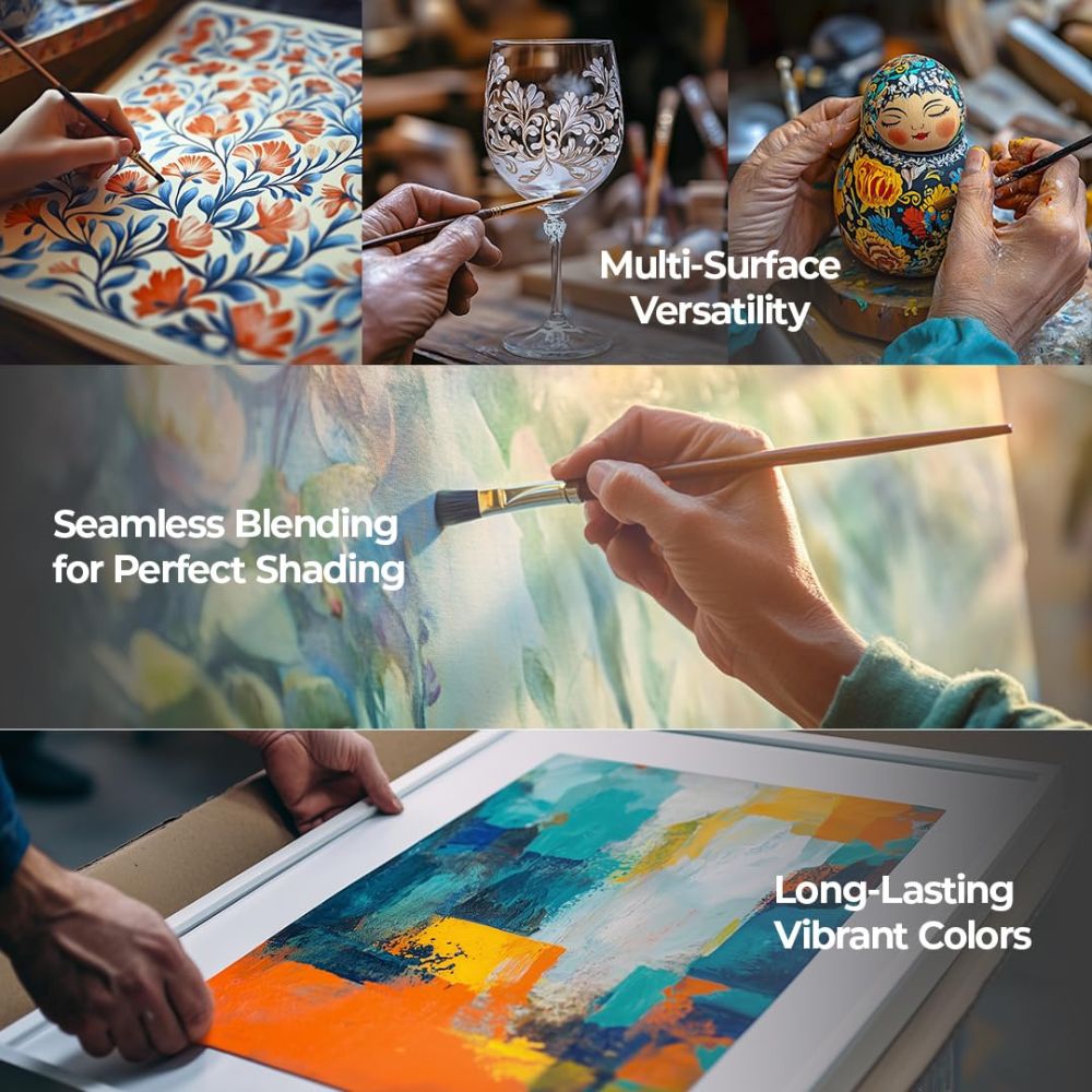 Specialty Brush Included: Unleash your creativity with the specialty brush included in the set, designed to complement the characteristics of these acrylic colours.