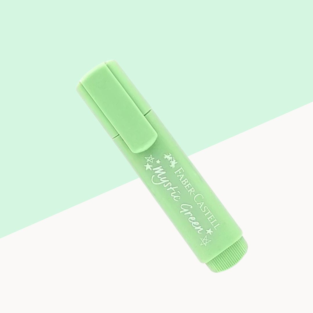 Enhance your highlighting experience with the Faber-Castell Pastel Textliner in Mystic Green . Its versatile use, precise line widths, and brilliant pastel color make it an essential tool for students, professionals, and creatives alike. Add a touch of elegance and clarity to your work with this high-quality textliner.