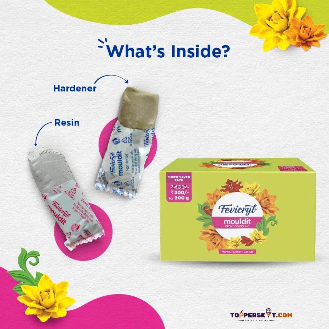 Create stunning murals and 3D art with Fevicryl Mouldit Epoxy Compound. This 900g set includes one 450g hardener and one 450g resin base, perfect for all your decor projects. SKU: 8901860546764.