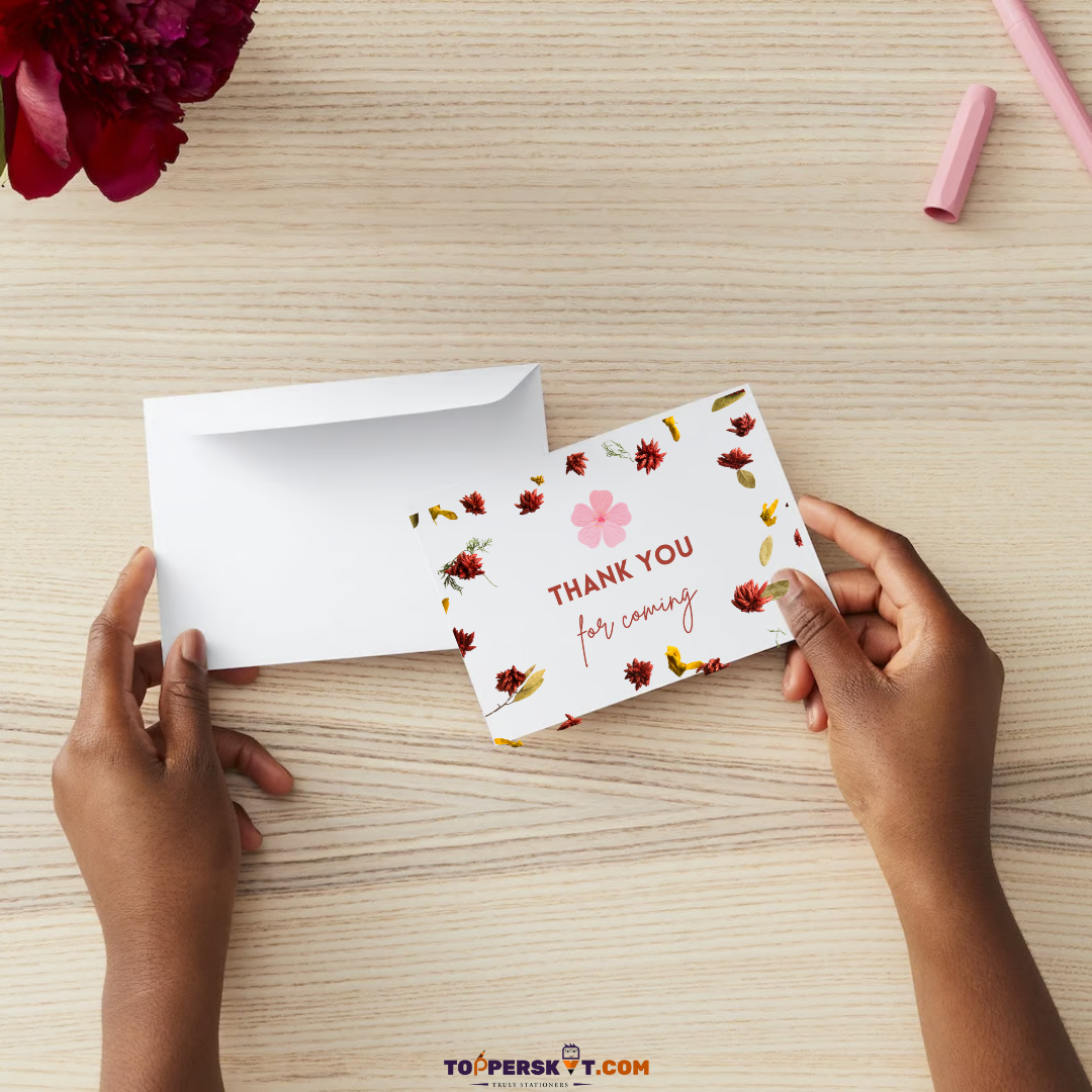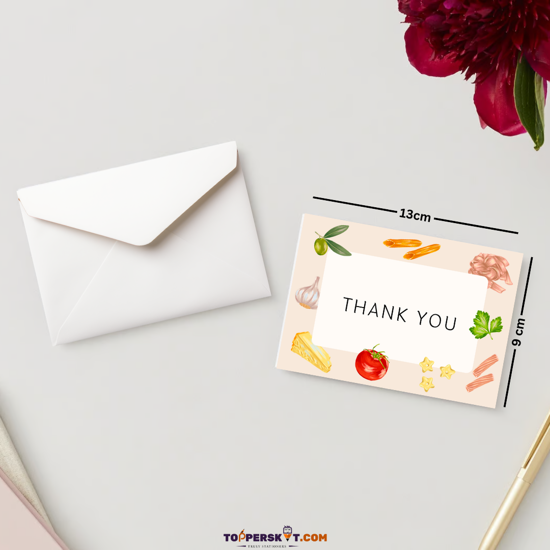 - This elegant Thank You card is designed to convey your heartfelt appreciation in style. Made from high-quality 300 GSM cold-pressed rough grain paper, it features a durable and sturdy feel. The card comes in a 13 cm x 9 cm size and includes a matching envelope, making it ideal for personal notes or formal messages. Whether you're thanking someone for a gift, favor, or support, this card adds a thoughtful touch to any occasion.