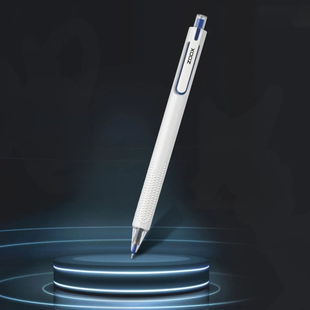 The Zoox T7 Mute Blue Gel Pen is a premium writing tool designed for comfort and precision. Its silent click mechanism ensures minimal noise, making it ideal for offices, classrooms, or libraries. The spring tip guarantees a smooth writing experience with every stroke, while the studded grip enhances comfort and prevents hand fatigue. Crafted with a modern and professional design, this pen is perfect for both everyday use and special occasions. The vibrant blue ink adds a touch of elegance to your notes, making this pen a must-have in your stationery collection